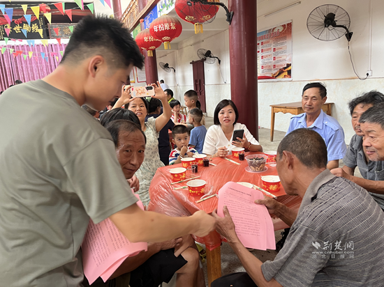 升學(xué)宴上,向村民分發(fā)文明新風(fēng)倡議書。 通訊員 供圖