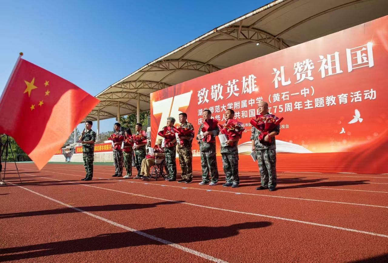 9月29日上午,國慶節(jié)臨近,“致敬英雄 禮贊祖國”——湖北師范大學(xué)附屬中學(xué)(黃石一中)慶祝中華人民共和國成立75周年活動(dòng)舉行。活動(dòng)通過走一次紅地毯、唱一首主題歌、獻(xiàn)一束手捧花、送一本報(bào)道集等形式,致敬為共和國無私奉獻(xiàn)的英雄們。