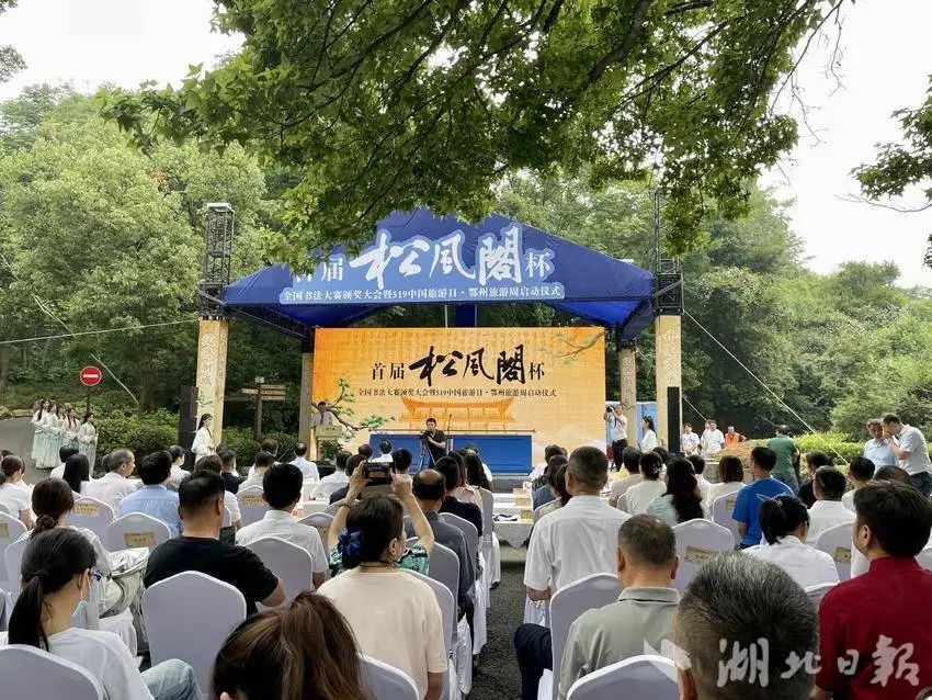 2024年5月19日,中國旅游日當(dāng)天,首屆“松風(fēng)閣”杯全國書法大賽頒獎大會在鄂州市西山風(fēng)景區(qū)隆重舉辦,省、市領(lǐng)導(dǎo)為獲獎代表頒獎。與此同時,現(xiàn)場邀請專家進(jìn)行了“跨越千年,對話黃庭堅(jiān)——黃庭堅(jiān)松風(fēng)閣書法的價值及對鄂州文化的塑造”對話。
