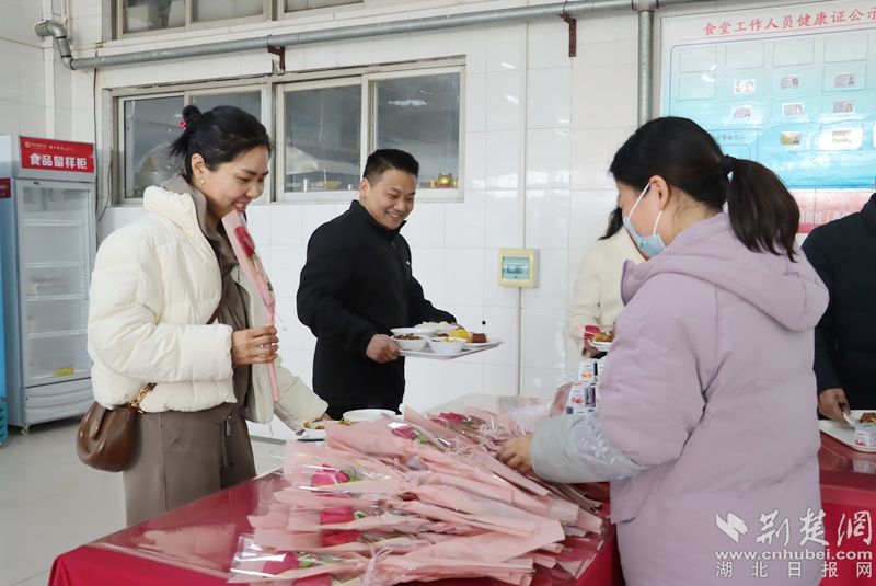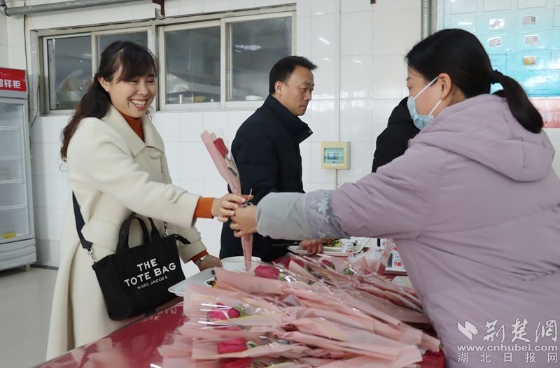 食堂為女職工送節(jié)日鮮花。