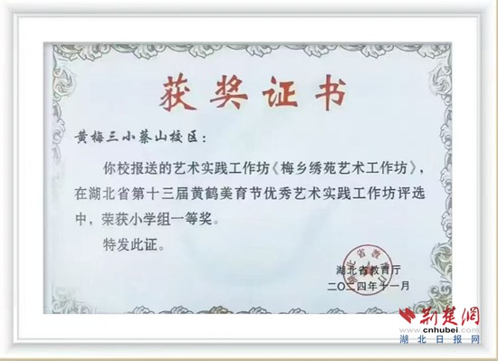 “讓孩子們從小學習挑花技藝,不能讓傳統(tǒng)技藝失傳,同時通過挑花活動培養(yǎng)孩子們靜下心來專注做事的良好品質(zhì)?!蓖趺粽f。2024年秋,學校“梅鄉(xiāng)繡苑”挑花工作坊帶著師生挑繡的作品參加湖北省第十三屆黃鶴美育節(jié),榮獲藝術(shù)實踐工作坊一等獎。