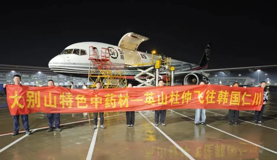 卸貨、稱重、貼標(biāo)、安檢、打板、上車,一氣呵成……5月15日下午,86箱1.37噸英山杜仲,在黃岡城市貨站完成預(yù)報關(guān)、稱重等流程后,運往花湖國際機場,搭乘次日5時11分飛往韓國仁川的順豐航空O3141航班,僅3小時19分后便抵達目的地。