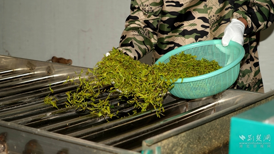 “我們現(xiàn)在是茶葉豐收期,所以我們生產(chǎn)車間都是24小時運轉(zhuǎn),工人都是三班倒,確保每天能產(chǎn)干茶600多斤?!?蘄春蟹子地茶業(yè)有限公司總經(jīng)理吳風(fēng)長高興道。