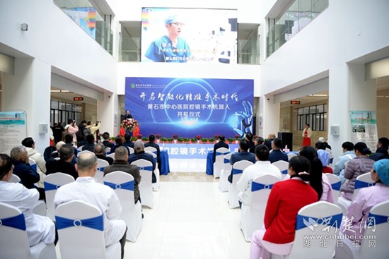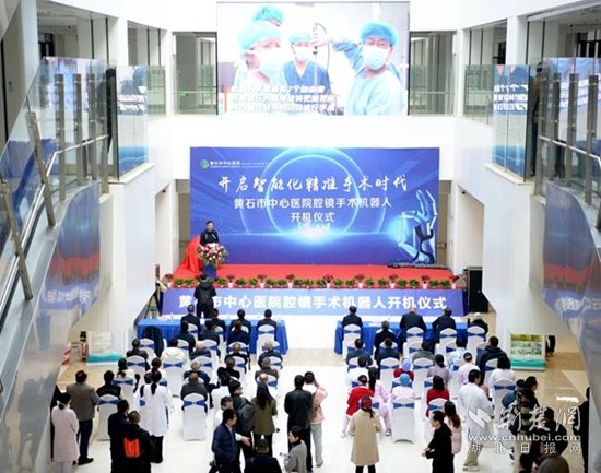 黃石市中心醫(yī)院院長(zhǎng)袁明在開(kāi)機(jī)儀式上致辭,他表示,黃石市首臺(tái)腹腔鏡機(jī)器人在黃金山院區(qū)投入使用, 將極大地推動(dòng)黃石市中心醫(yī)院外科技術(shù)的發(fā)展。黃石市中心醫(yī)院將以此技術(shù)開(kāi)展為契機(jī),進(jìn)一步提高醫(yī)療質(zhì)量,為黃石市衛(wèi)生健康事業(yè)高質(zhì)量發(fā)展作出新的更大貢獻(xiàn)。