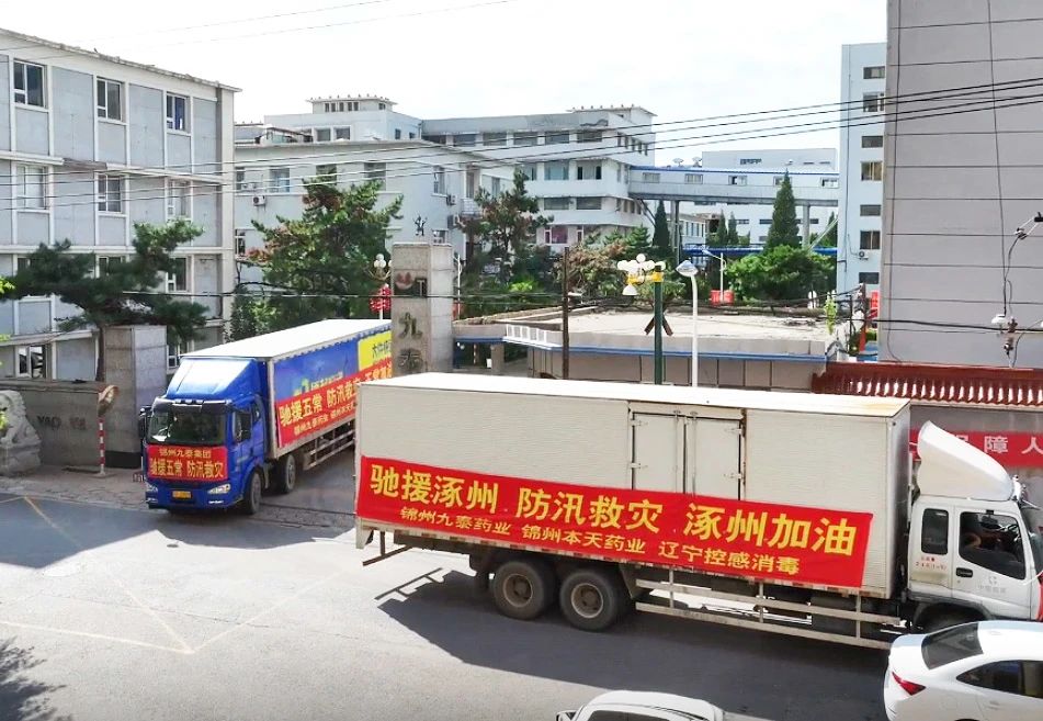 8月5日到7日,錦州九泰藥業(yè)及集團下屬錦州本天藥業(yè)、遼寧控感消毒科技公司三家企業(yè)上下聯(lián)動,全力組織員工從三家企業(yè)庫房緊急調(diào)配包括復方氯己定撒粉、復方紫荊皮水楊酸溶液、硫酸慶大霉素碳酸鉍膠囊、蒲地藍消炎片、對乙酰氨基酚片、氨咖黃敏膠囊、乙醇消毒液、84消毒液、碘伏消毒液及消毒片等價值300多萬元的急需藥品及消毒用品。其中消毒消殺用品因庫存不足,企業(yè)臨時決定增加生產(chǎn)計劃,員工加班加點24小時連續(xù)生產(chǎn),爭分奪秒,將1400余件的救援藥品馳援涿州、五常、舒蘭等地,用于災區(qū)救援,保障受災群眾人身安全,助力災后重建及復工復產(chǎn)等工作。