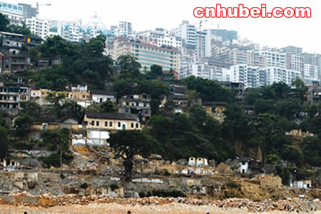 截斷巫山云雨,高峽出平湖。再過兩天,承載著億萬中國人夢想的三峽大壩135米蓄水就將開始,長江三峽一些人們熟悉的景觀將從此沉睡在煙波浩淼的高峽平湖之中。(左圖—)豐都老城廢墟上,一名婦女正逗孩子玩。遠處是高樓林立的新縣城。
