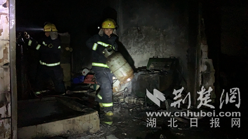 圖為消防指戰(zhàn)員轉(zhuǎn)移煤氣現(xiàn)場。 肖幫治攝