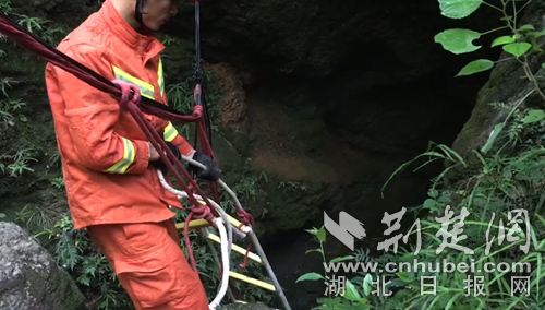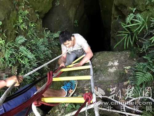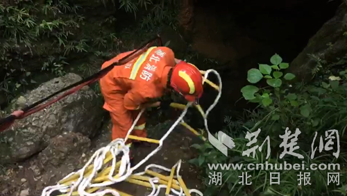 消防員搭建軟梯準(zhǔn)備入洞營(yíng)救?!》侗蟊髷z