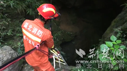 消防員徒步半個(gè)多小時(shí)后,到達(dá)事故現(xiàn)場(chǎng),現(xiàn)場(chǎng)是10多米的深洞,一名20多歲的年輕男子在洞內(nèi)呼救。據(jù)消防員介紹,今年3月10日,在同樣的地點(diǎn),消防員也曾救出因好奇入洞探險(xiǎn)男子。