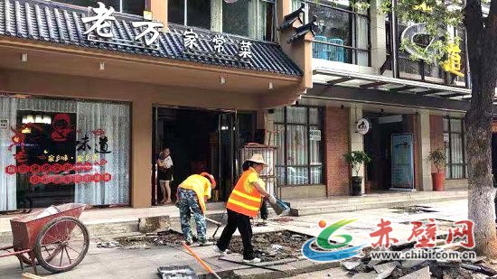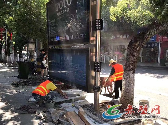 赤壁網(wǎng)消息(記者 聶愛(ài)陽(yáng))近日,在赤壁城區(qū)公交站臺(tái)、大眾餐館、家聯(lián)超市、老水利局、一橋……都能看到他們的身影——烈日下的一抹桔,用電鉆、角鋤、鐵鍬撬動(dòng)原有的地面,用泥漿、錘頭、抹泥刀,鋪設(shè)上全新的大理石。