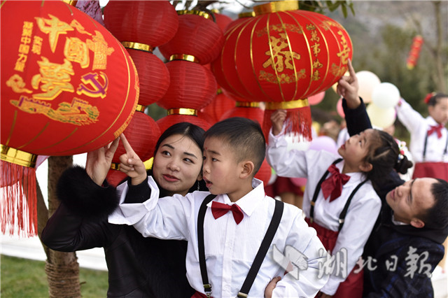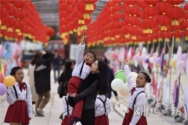 2019年2月2日,小朋友在通城縣塘湖鎮(zhèn)荻田村紅色廣場(chǎng)紅燈籠旁合影。當(dāng)日,湖北省通城縣塘湖鎮(zhèn)荻田村在紅色廣場(chǎng)舉行花傘彩燈民俗節(jié)活動(dòng),以趕集逛廟會(huì),舞龍、旗袍秀、跳廣場(chǎng)舞、觀花傘彩燈、草扎、鄉(xiāng)土美味等多彩民間活動(dòng)展示美麗鄉(xiāng)村建設(shè)成果,在濃濃的年味中喜迎新春。(視界網(wǎng)劉建平攝)