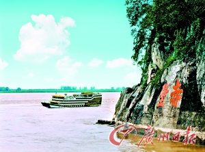 在赤壁縣城西邊的赤壁古戰(zhàn)場,如今依然江水滔滔。當年“赤壁之戰(zhàn)”,經此一役,定下三分天下格局。李白詩曰:“二龍爭戰(zhàn)決雌雄,赤壁樓船掃地空。烈火張?zhí)煺赵坪#荑び诖似撇芄!毕﹃栁飨,紅色的陽光灑在江面上,怎不讓人想起那烽火連天的三國?